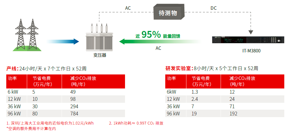 IT-M3800具有能量回收功能,可以将电能无污染的回馈电网,回馈最高可近95%。所有的回馈过程都是自动且安全的,IT-M3800配备了自动电网检测系统,实时检测相电压、频率用于电网同步。不但可以节省电力、暖通空调和制冷设施的成本,减少噪音,而且有助于减少碳排放,保护环境。
