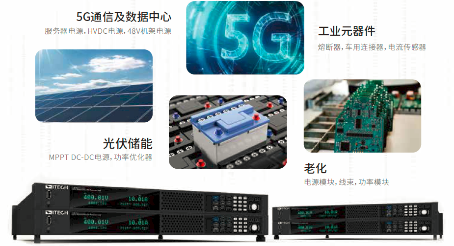 IT-M3800系列回馈式直流电子负载既能模拟各种负载特性,又能将电能无污染的回馈电网,不但为用户节省了用电和散热成本,同时也符合节能环保的需求。具备高精度的输出和量测,并且针对测试做了多项安全设计,适合用于5G通信及数据中心、工业元器件、老化测试、光伏储能、功率优化器等多个测试领域。