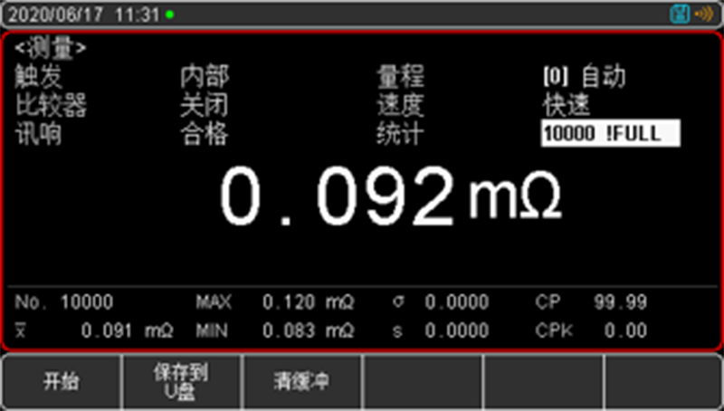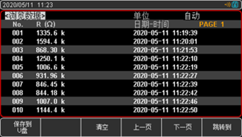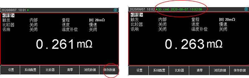 支持将测试数据手动保存于仪器内部(存储500组)。 使用外部U盘时,支持测试数据自动存储,并保存为CSV文件。