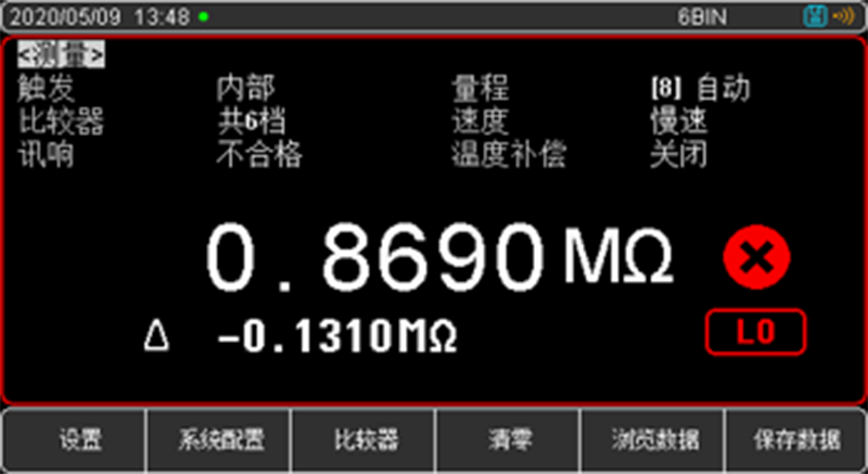 UT3516具有6档分选功能,UT3513具有1组比较器功能。 内置10档比较器输出(UT3516):6个合格档(BIN1~BIN6),3个不合格档(NG, NG LO, NG HI,1个总合格档(OK)。 三种讯响选择方式:关闭,合格,不合格 比较方式:直读比较、绝对值公差、百分比公差