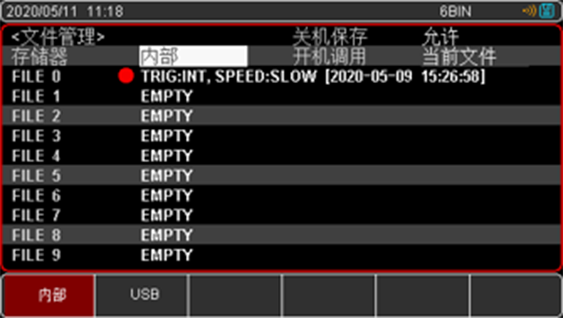 对于测量显示值,手动保存后实现在仪器屏幕上快速浏览。 文件管理允许用户保存设置到10个文件中,便于开机或更换规格时读取。