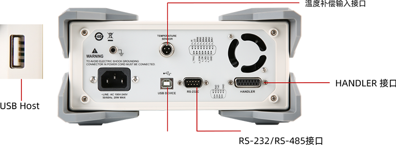 RS-232/RS-485接口 USB Device HANDLER 接口 温度补偿传感器输入接口 USB Host接口