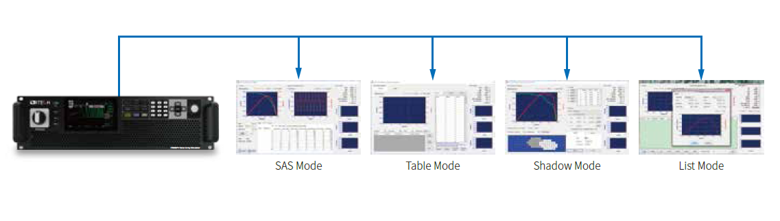 IT6600PV系列配备了专为太阳能光伏曲线模拟设计的SAS测试界面,支持光伏阵列/模块/电池的最大功率点追踪测试。在User-defined模式中,用户可以轻松设置Voc(开路电压)、Vmp(最大功率点电压)、Imp(最大功率点电流)和Isc(短路电流)等参数,以生成特定的I-V曲线输出。Curve模式提供了根据EN50530和Sandia标准的光伏模拟功能,允许用户根据不同的标准选择相应的太阳能电池板材料,并通过设定Vmp(最大功率点电压)和Pmp(最大功率点功率)参数进行模拟,非常适用于验证光伏逆变器(PV Inverter)的性能。