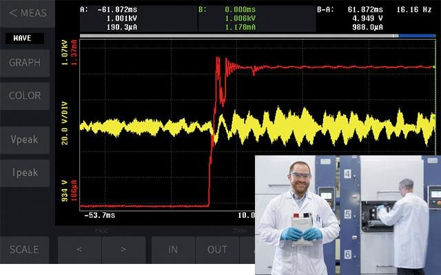 可以通过波形确认测试时输出电压或泄漏电流的动向。
