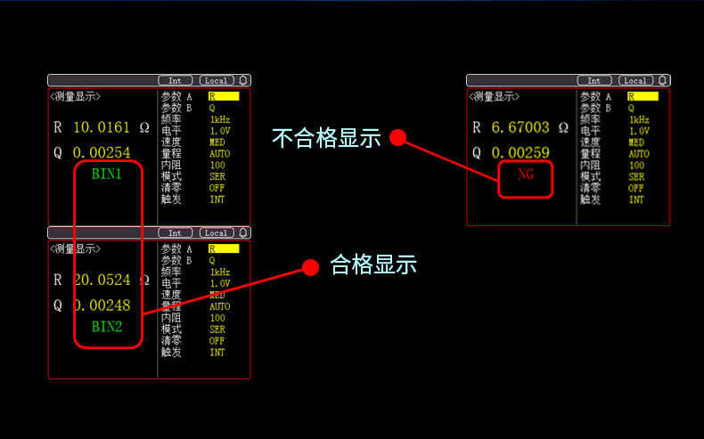 4档分选,BIN1-BIN3,NG,AUX前面板LCD显示