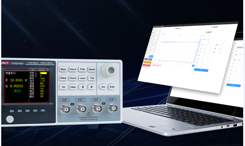 UTR2810E +系列数字电桥采用最新测量原理打造的新一代低频元件测量仪器。具有体积小、重量轻、外形美观、操作简便、超高性价比、测试稳定性好等优势。此外拥有丰富的接口,支持RS-232及HANDLER接口(仅UTR2810E+),满足自动化测试需求,无论是应用于生产线的质量控制、来料检验和元件自动测试系统均游刃有余。